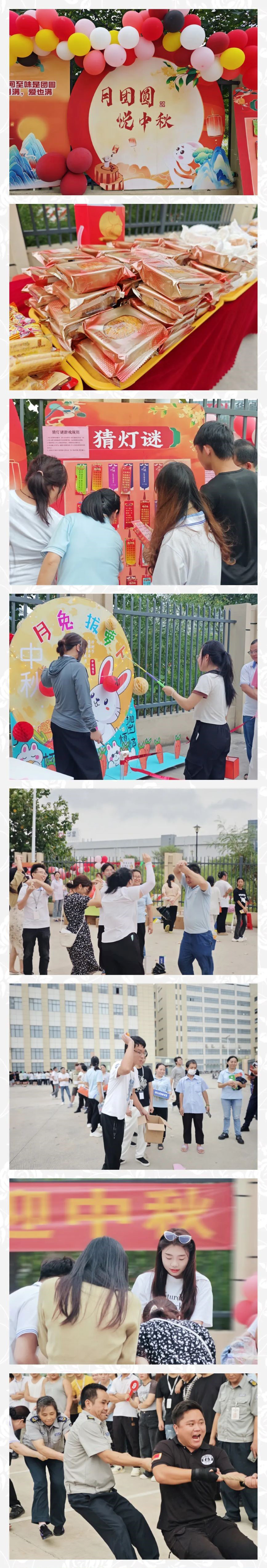 The company headquarters and the administration of East China and South China regions carefully organised the ‘Mid-Autumn Festival Garden Tour’ in a relaxing and pleasant garden tour, colleagues in all regions actively participated in enjoying a variety of fun games, riddles, food and cooking contest, tug-of-war and other activities, the scene is full of laughter and merriment, this activity allows employees to harvest joy and blessings, experience the cultural charm of traditional festivals, relieve the tension of work, feel the warmth of the company's family, leaving a unique and beautiful memory at the advent of the festival. This activity allowed employees to harvest joy and blessings, experience the cultural charm of traditional festivals, soothe the tension of work, feel the warmth of the company's big family, and leave unique and beautiful memories on the occasion of the festival.